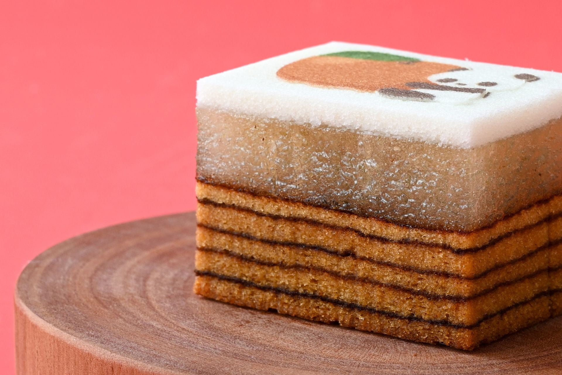 これまでの「型ぬいて食べる」楽しさに、みずみずしい食感をプラスした新作。キャラメル香るバウムクーヘンとメレンゲ仕立てのパウンド生地のあいだに、りんごゼリーをサンドしました。