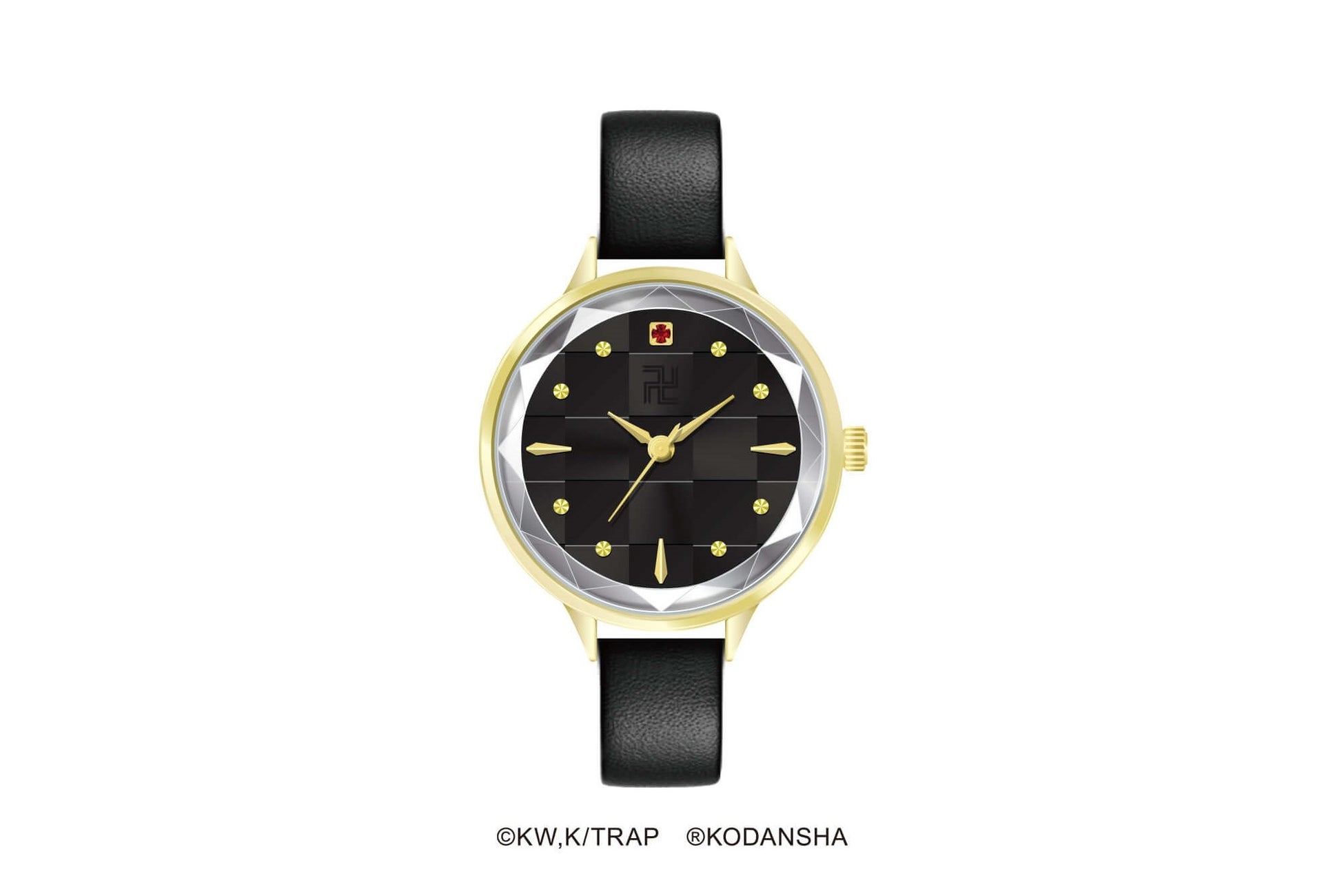 TVアニメ『東京リベンジャーズ』の新作グッズとして登場する腕時計は、特攻服を想起させる黒革のベルトと盤面に浮かび上がる「卍」のマークが特徴。