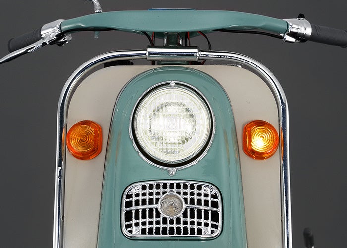 富士重工業が1959(昭和34)年に発売し、大ヒットモデルとなったスクーター「ラビット スーパーフローS601」を1/8スケールで精密に実現しました。