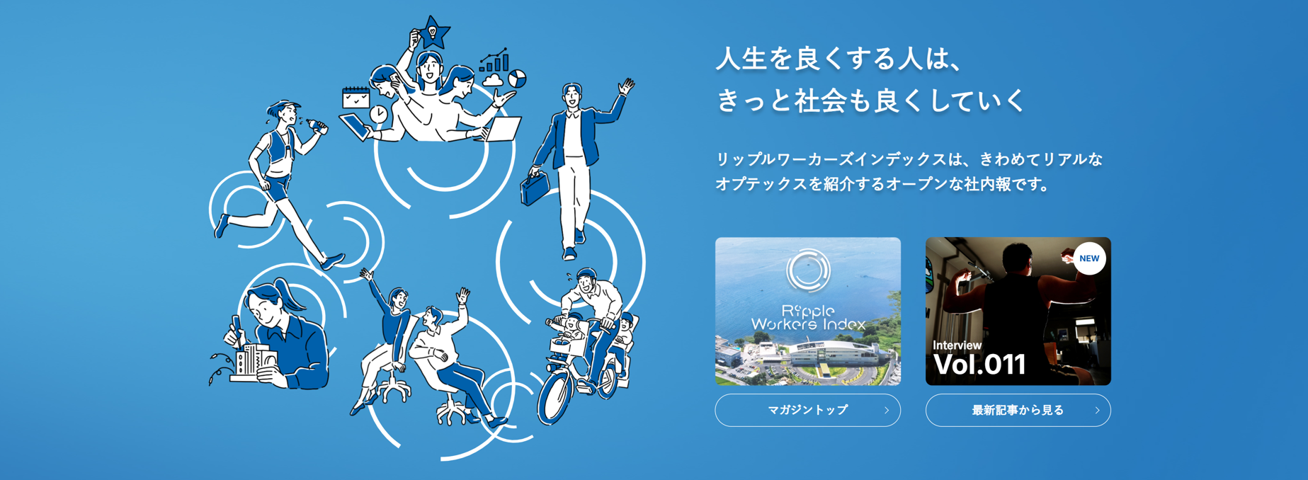 『Ripple Workers Index』はオプテックスが実践する働き方の考え方「Ripple Work」のもと、社員一人ひとりの価値観や仕事観、キャリアの歩みを丁寧に掘り下げて紹介するオープン社内報です。経営理念や企業文化を可視化し、社内外に共有することを目的としています。2024年度にもWEB部門で奨励賞を受賞しました。