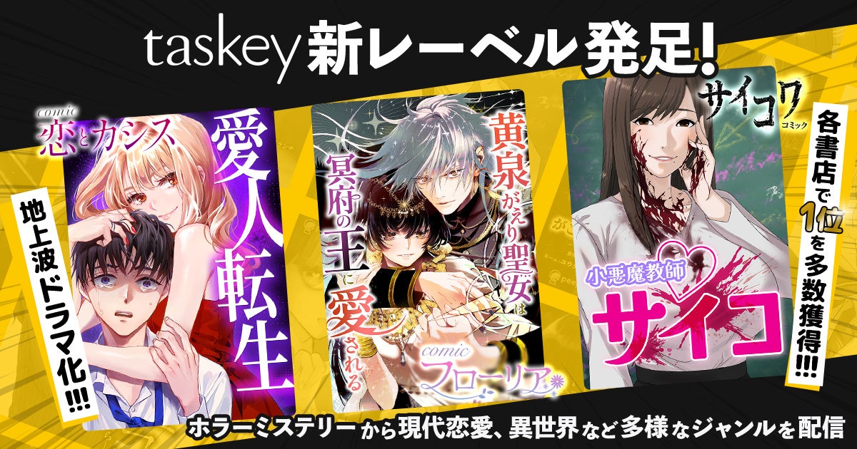 各書店で1位を多数獲得した『小悪魔教師サイコ』や 地上波ドラマ『愛人転生』の原作マンガなどを手がけるtaskey、新レーベルを発足!