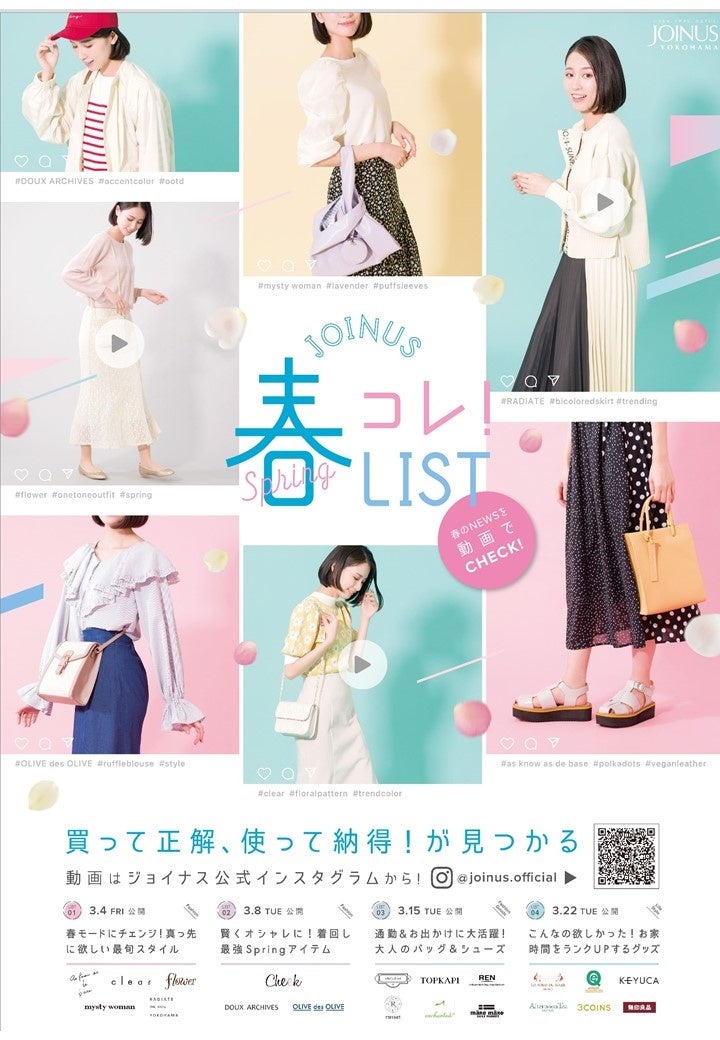 相鉄グループの㈱相鉄ビルマネジメント(本社・横浜市西区、社長・森村幹夫)が運営するジョイナスでは、2022年3月4日(金)から順次、オリジナル動画サイト「ジョイチャンネル」にて、春に欲しいファッションやライフスタイルグッズを紹介するオリジナル動画を配信します。