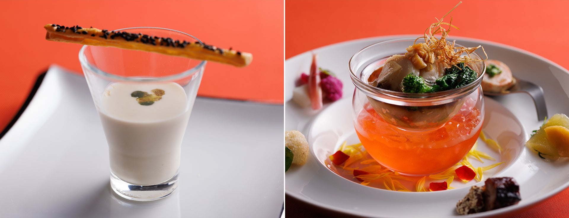中国料理とフランス料理。それぞれの味わいを堪能いただける「シェフ&シェフ」コース料理で、贅沢なひとときをお楽しみいただけます。