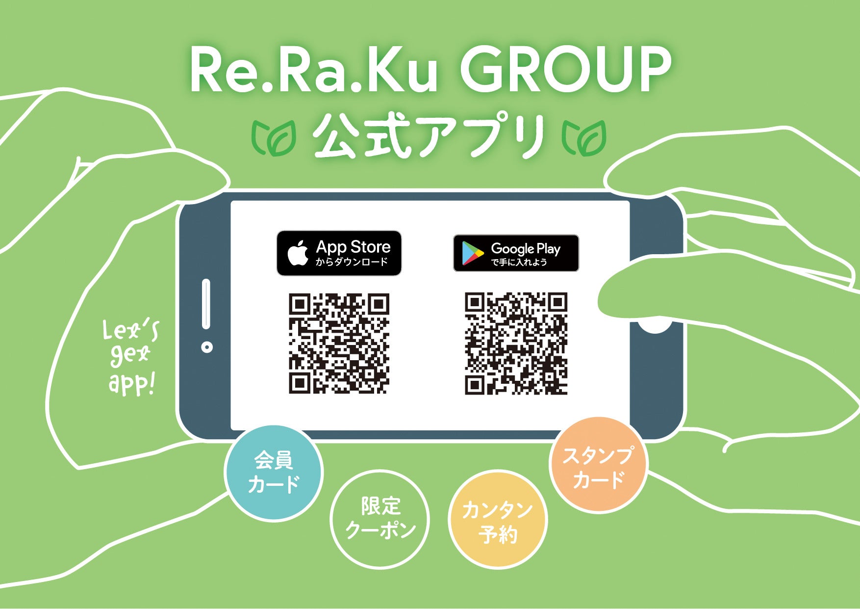 iPhoneをお使いの方▶︎https://apps.apple.com/jp/app/re-ra-ku-group/id1604692153