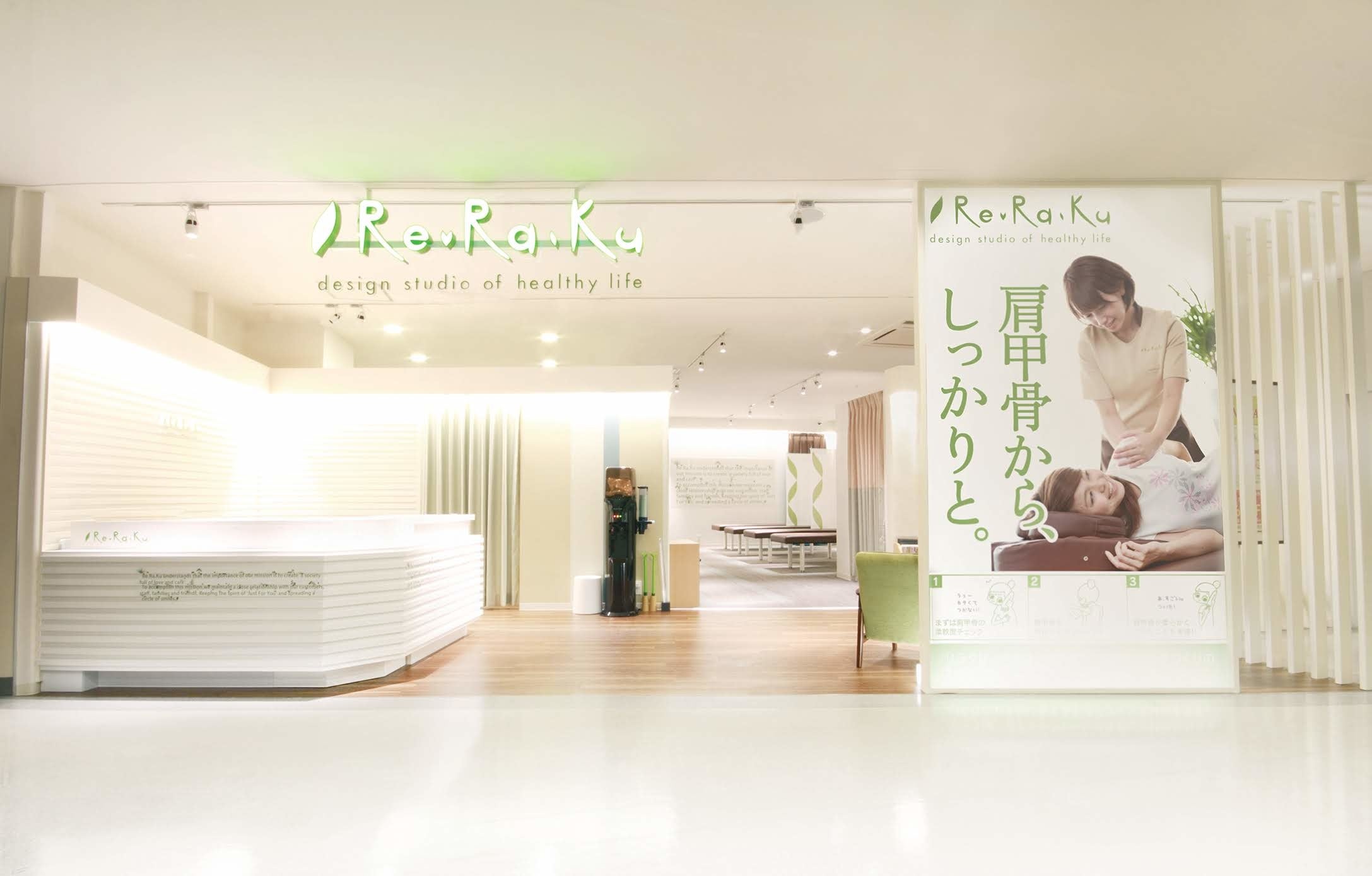 Re.Ra.Ku は、関東圏を中心に展開するリラクゼーションスタジオです。疲労撃退を目的にした健康管理サービスを提供しています。サービスメニューの代表は、Re.Ra.Ku 独自のメソッドであるウィングストレッチ®︎です。身体を整える上で、重要部位の一つは肩甲骨です。17種類の筋肉と繋がっている肩甲骨周りのストレッチを欠かさず行い、柔軟性を高めていきます。また、健康管理スタジオとして、お客様の快適な身体状態が長期的に続くように、コミュニケーションを通じ、疲労の根本的な原因も探っていきます。施術後にはセルフストレッチなどをお客様にお伝えし、ご来店時以外の日常生活でもお客様がご自身の健康を意識できるようサポートをしていきます。