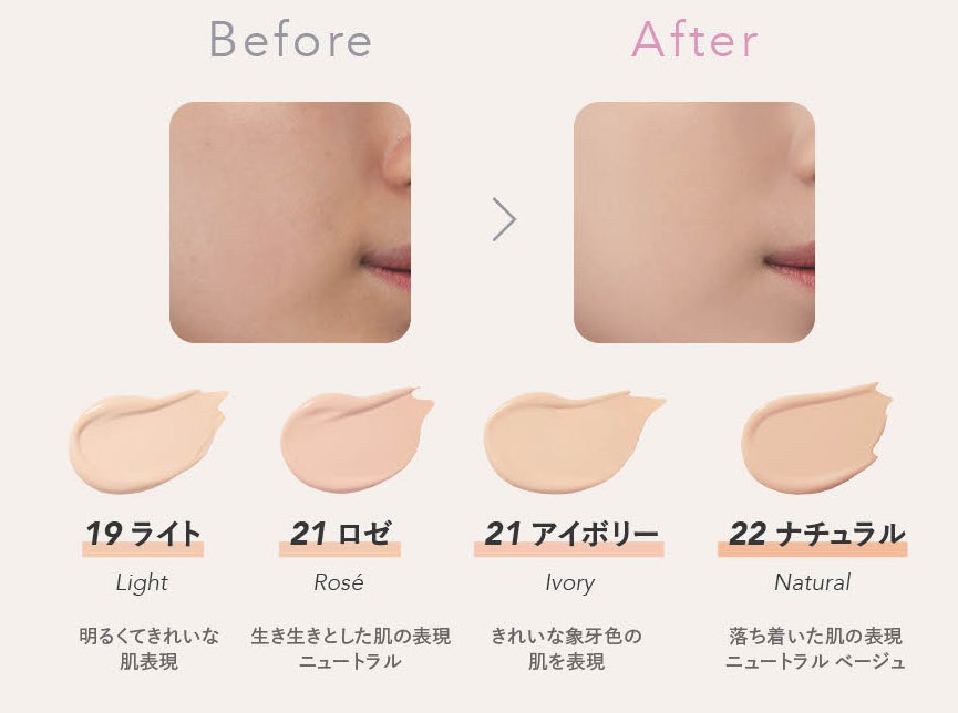 薄くてもキレイに、軽やかな使用感ながらも肌の欠点をしっかりカバーするクリアマットフィニッシュ
