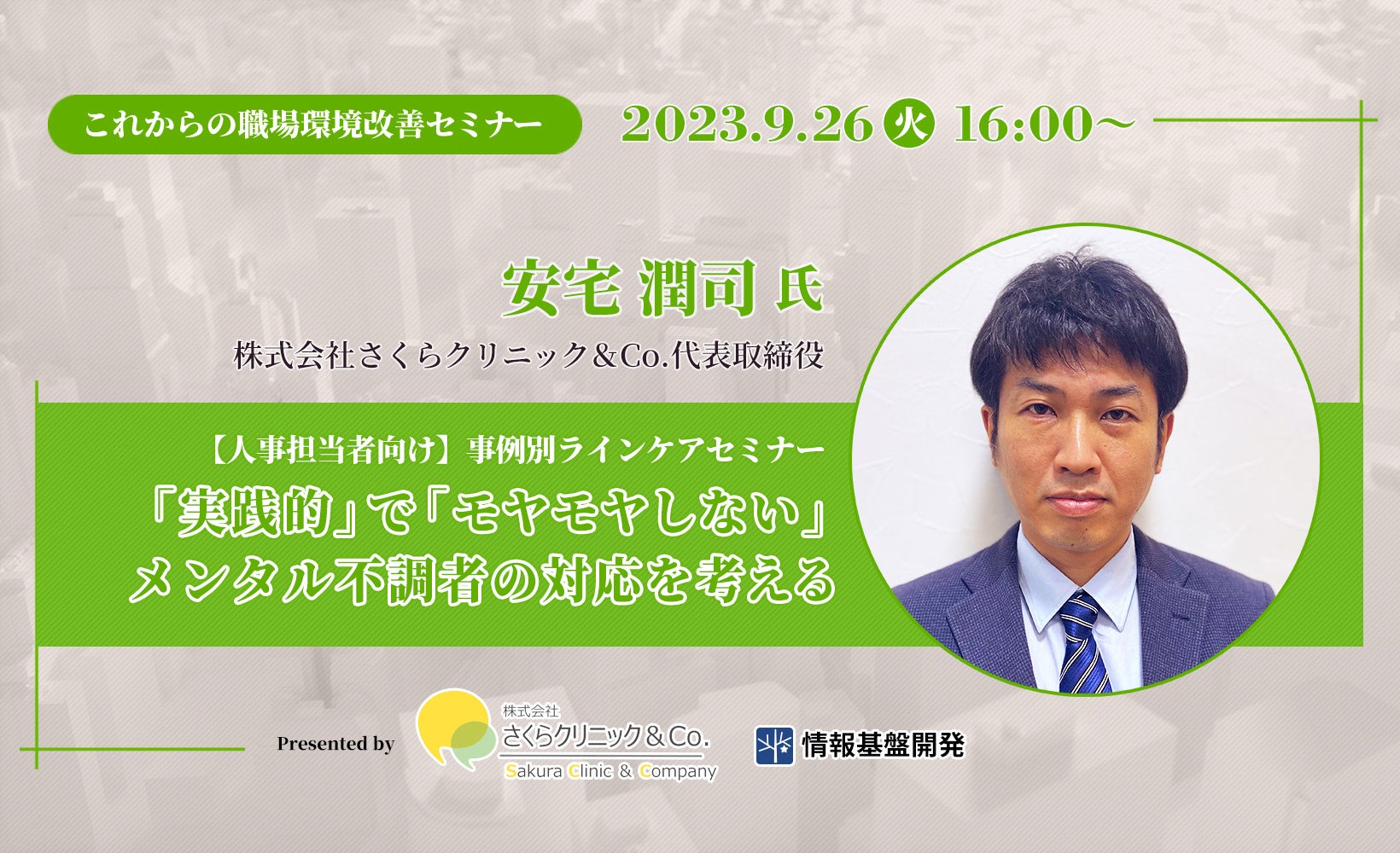 【9/26(火)16時開始】さくらクリニック&Co.共催・人事担当者向け「メンタル不調者の対応を考える」事例別ラインケアセミナーをオンライン開催
