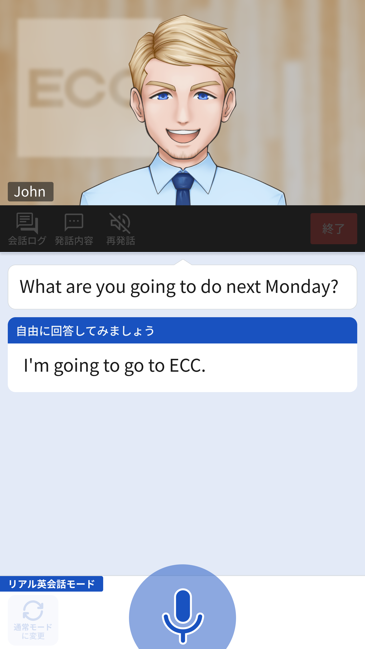「ECC Study Assist」は、日本人特有の英語の発音を聞き分けて対話を組み立てられる人工知能(AI)を搭載し、英語初心者から中級者まで「まるでリアルシーンで会話しているかのような自然なコミュニケーション」をアプリ上で疑似体験できるのが特長です。