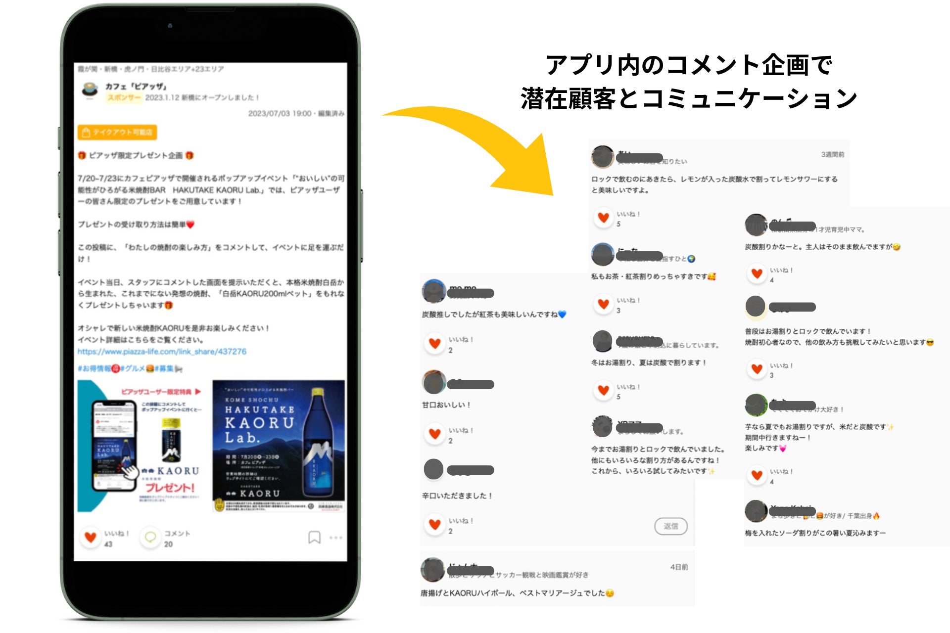 ・アプリ「ピアッザ」でのコメント・プレゼント企画を実施