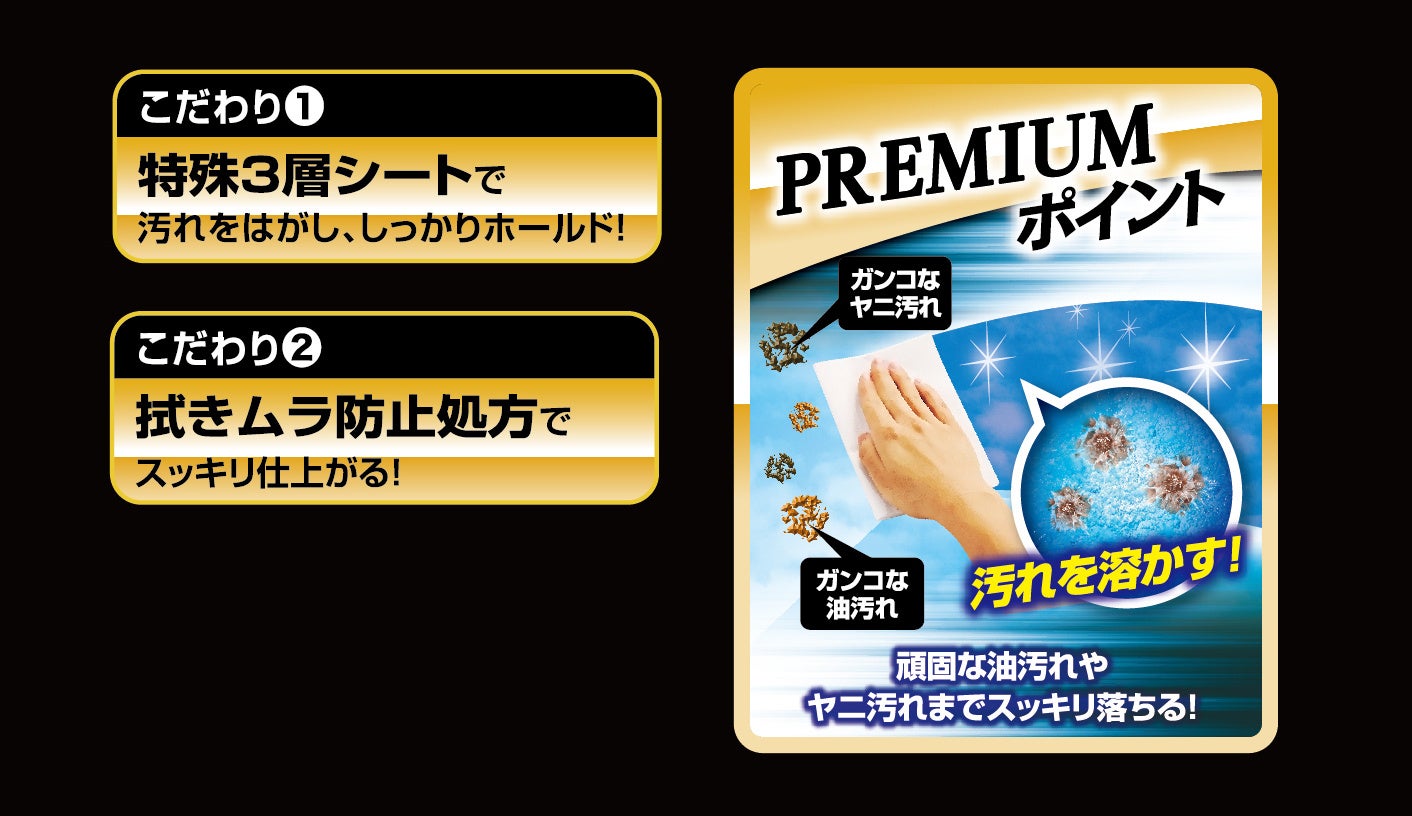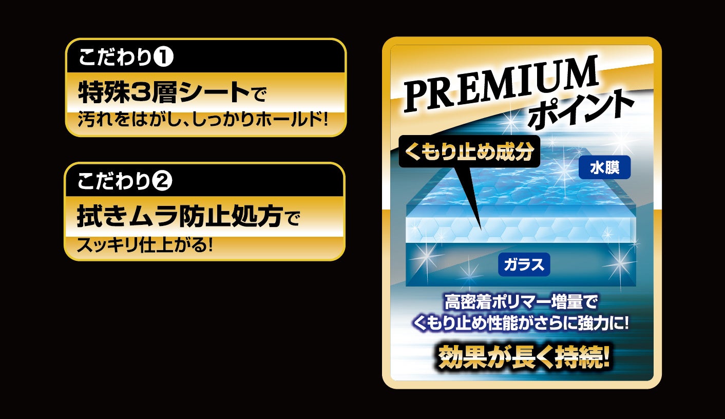 カンタンなのに効果は2倍。汚れ落とし特化と、くもり止め強化の2種
