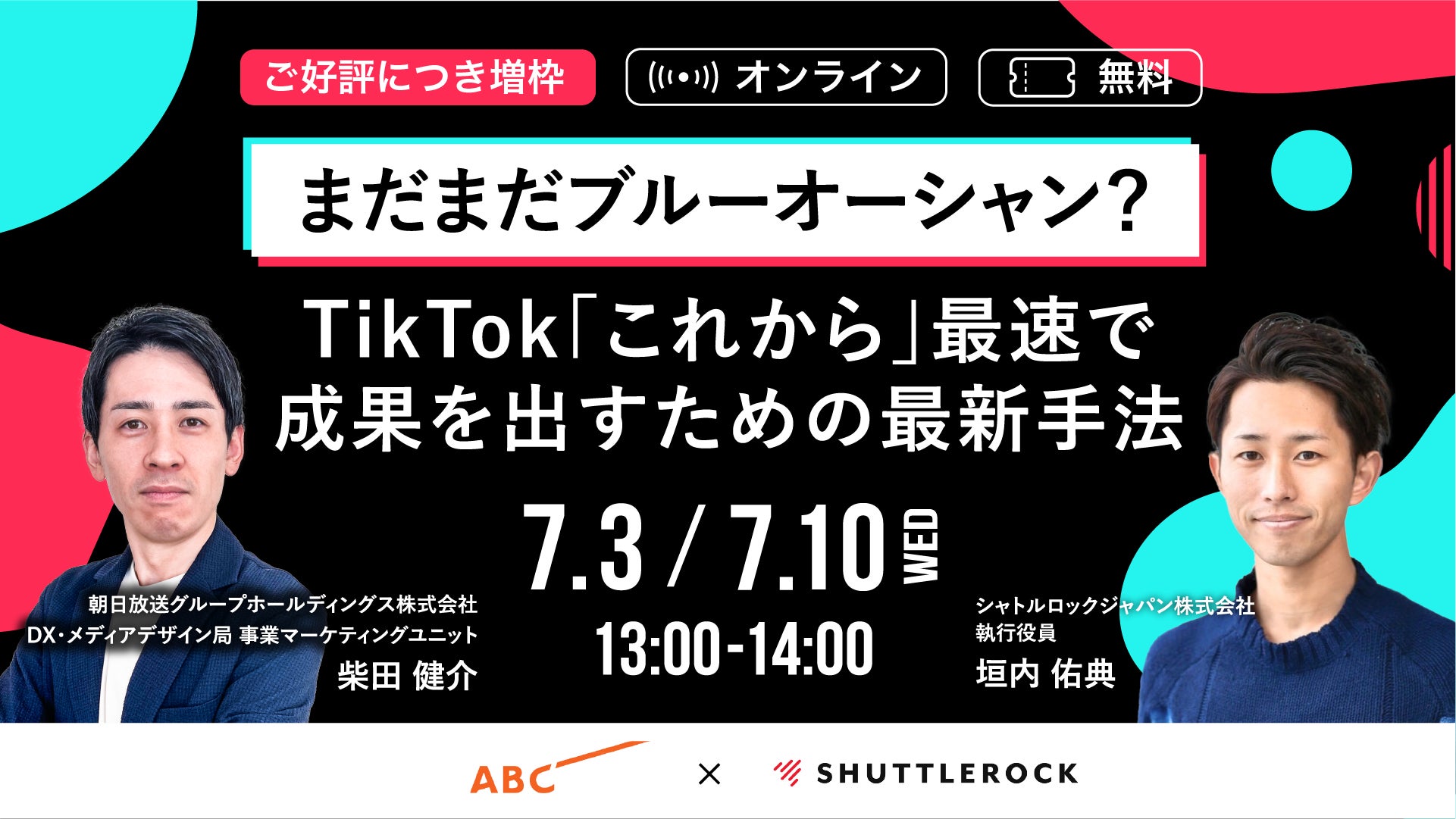 シャトルロックジャパン株式会社は7月3日・10日(水)13時より、朝日放送グループホールディングス株式会社と共催で「TikTokコンテンツ企画・キャンペーン運用」をテーマにセミナーを開催します。