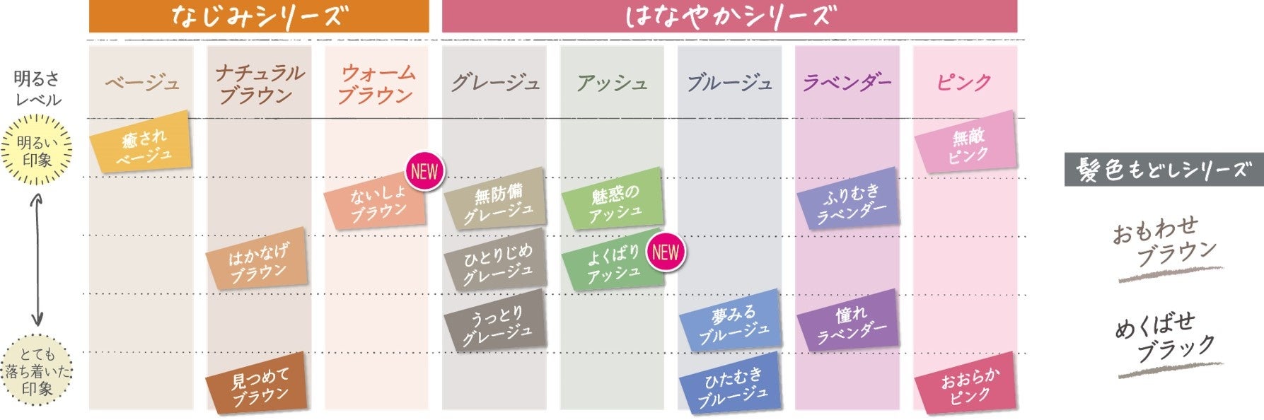全15色のラインアップ (髪色もどしを含めると全17色)