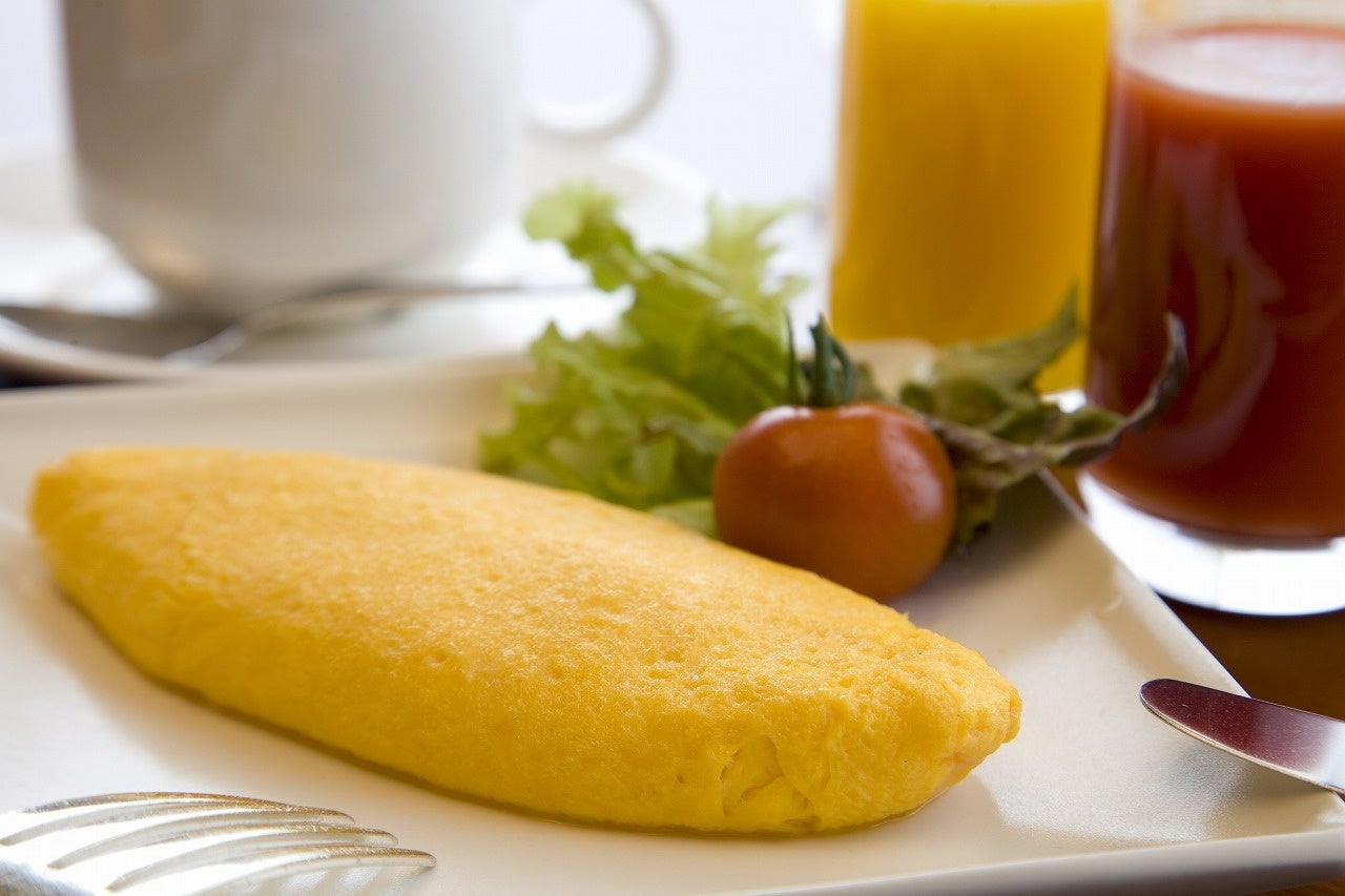 シェフが目の前で作り上げる、ふわふわ出来立てのオムレツ。お好みのソースでお召し上がりください。