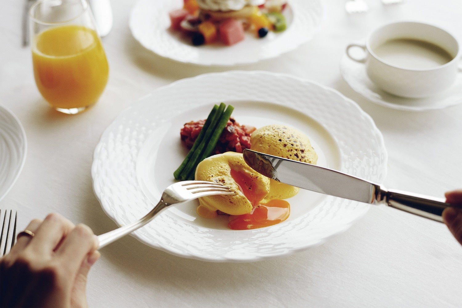 ふわふわの白身と、トロっと溢れる黄身がたまらない!エッグベネディクトや、パンケーキ、サラダ、スープなど、女性に嬉しい特別な朝食を、絶景とともにお楽しみください。