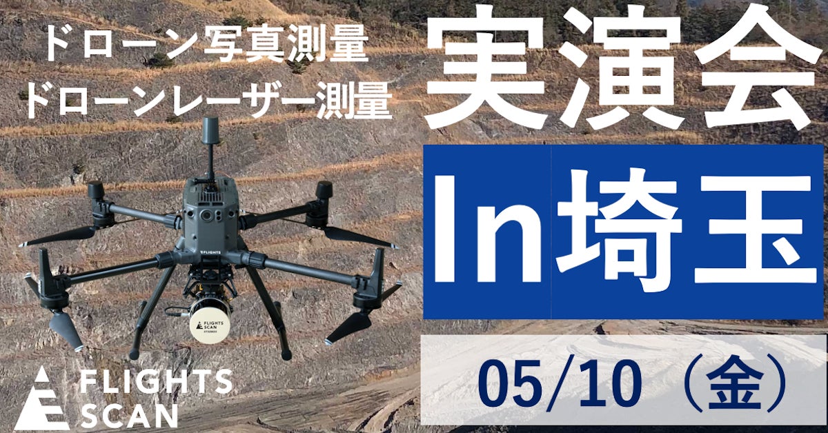FLIGHTSと埼玉測機社は、5月10日に無料実演会を開催。タイトルは【ドローン搭載型LiDAR「FLIGHTS SCAN®」無料実演会 in 埼玉】です。当実演会では、ドローン写真測量とレーザーの実際のオペレーションをお見せします。