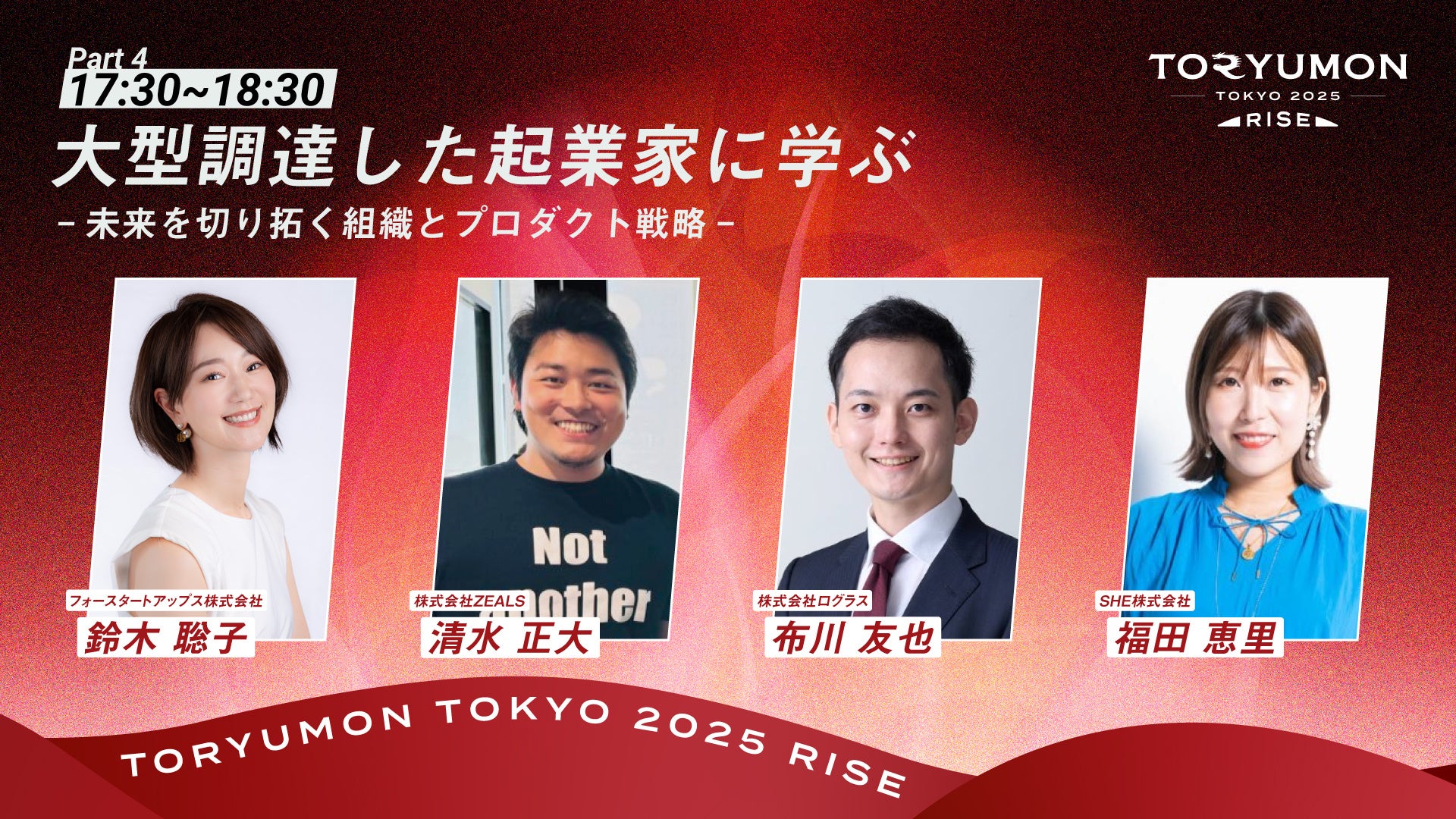 17:30〜18:30 第4部 大型調達した起業家に学ぶ-未来を切り拓く組織とプロダクト戦略-