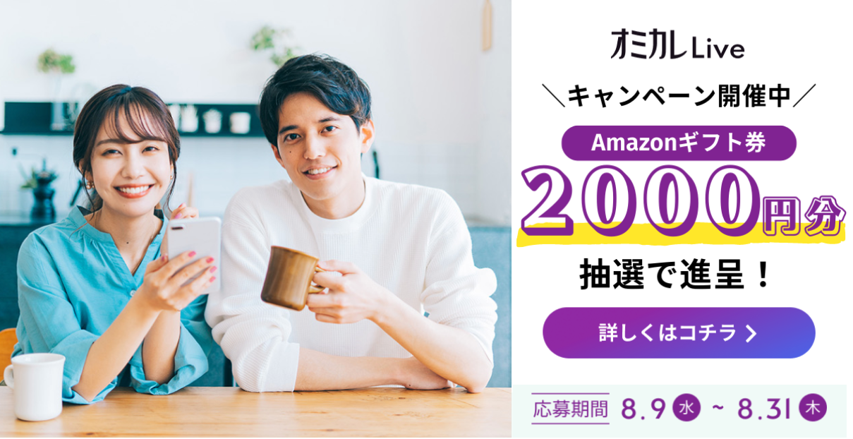 期間中にオミカレLiveに登録し、本人認証完了+本人画像を登録された方を対象に、抽選で20名様にAmazonギフト券2000円分をプレゼント!