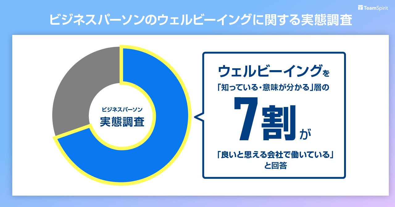 【ビジネスパーソンのウェルビーイングに関する実態調査】ウェルビーイングを「知っている・意味が分かる」層の7割が「良いと思える会社で働いている」と回答、「知らない」層に比べ20ポイント以上の差