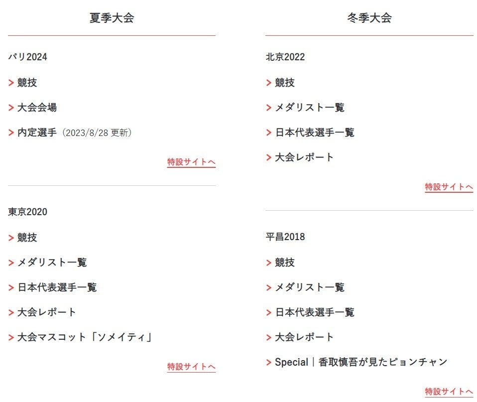 過去大会のメダリストや日本代表選手、マスコットなど、知りたい情報にアクセスしやすくなりました!
