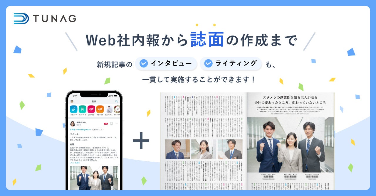 TUNAG、社内報のコンテンツ企画からライティングまでを含めた、誌面作成の新サービスをリリース!