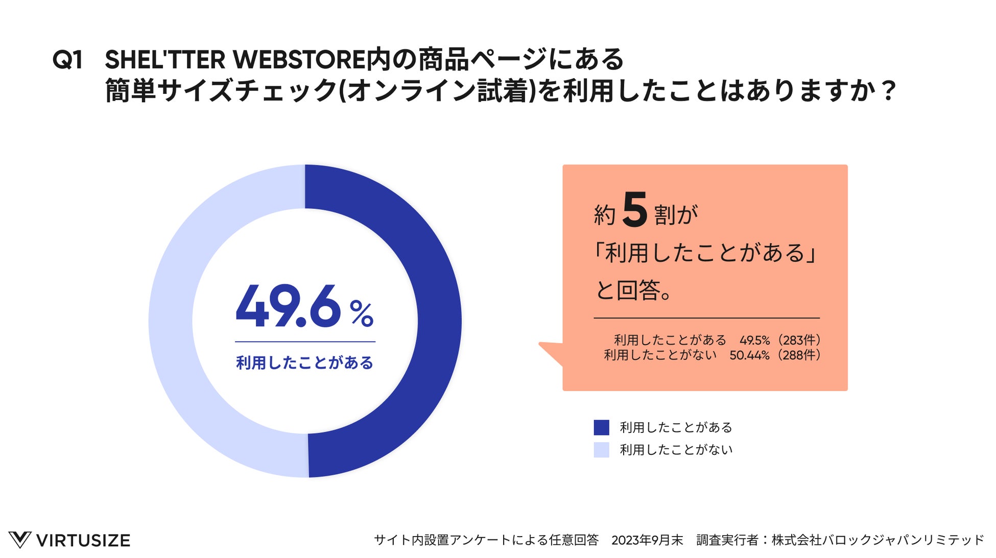 Q1:SHEL'TTER WEBSTORE内の商品ページにある簡単サイズチェック(オンライン試着)を利用したことはありますか。