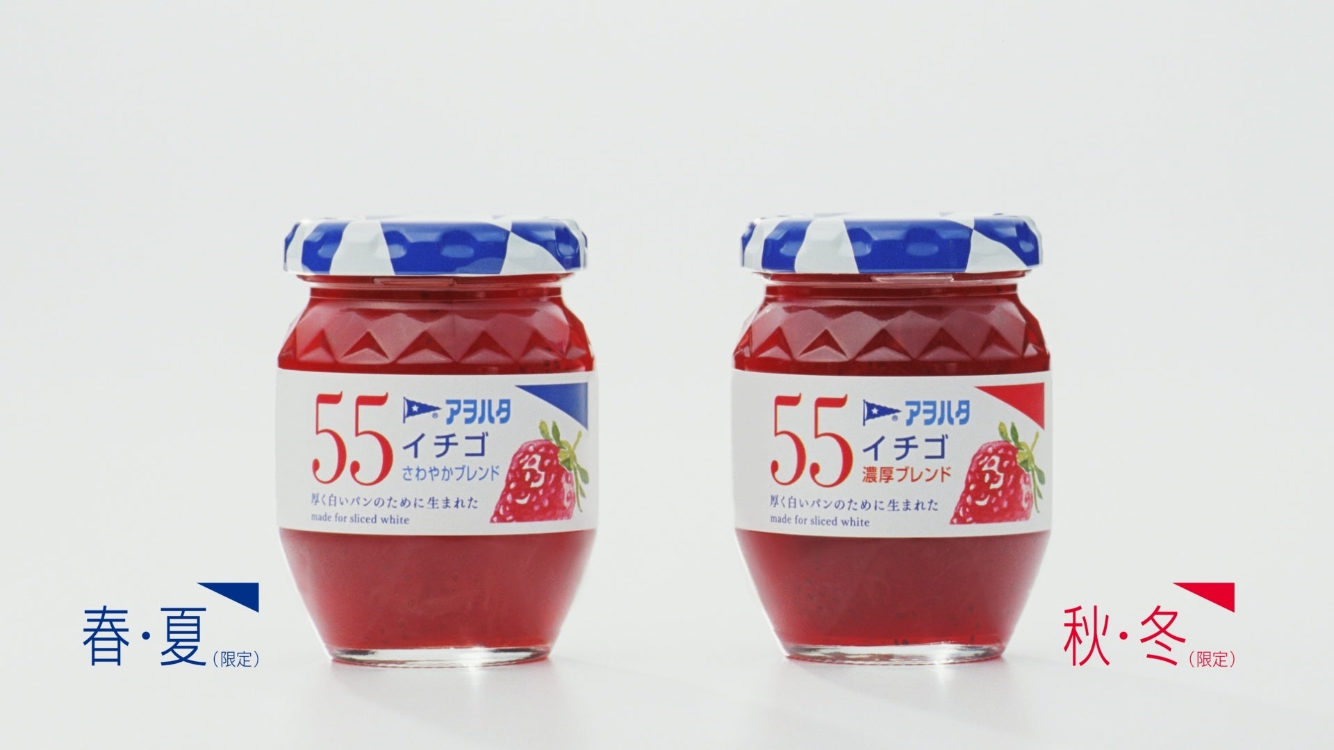1970年の発売以来「アヲハタ 55」は生活スタイルなど時代の変化に合わせ、甘さを抑えた“フルーツのおいしさ”に磨きをかけてきました。今年、発売から55周年を迎え、「アヲハタ 55 イチゴ」は“季節に調和する2種類”が誕生。長年培ったノウハウを生かし原料のブレンドや製法を変えることで、日本初の取り組み※1として季節に合わせたおいしさを実現しました。2月に発売した春夏限定の「さわやかブレンド※2」に代わり、8月21日(木)からは秋冬限定の「濃厚ブレンド」を出荷します。