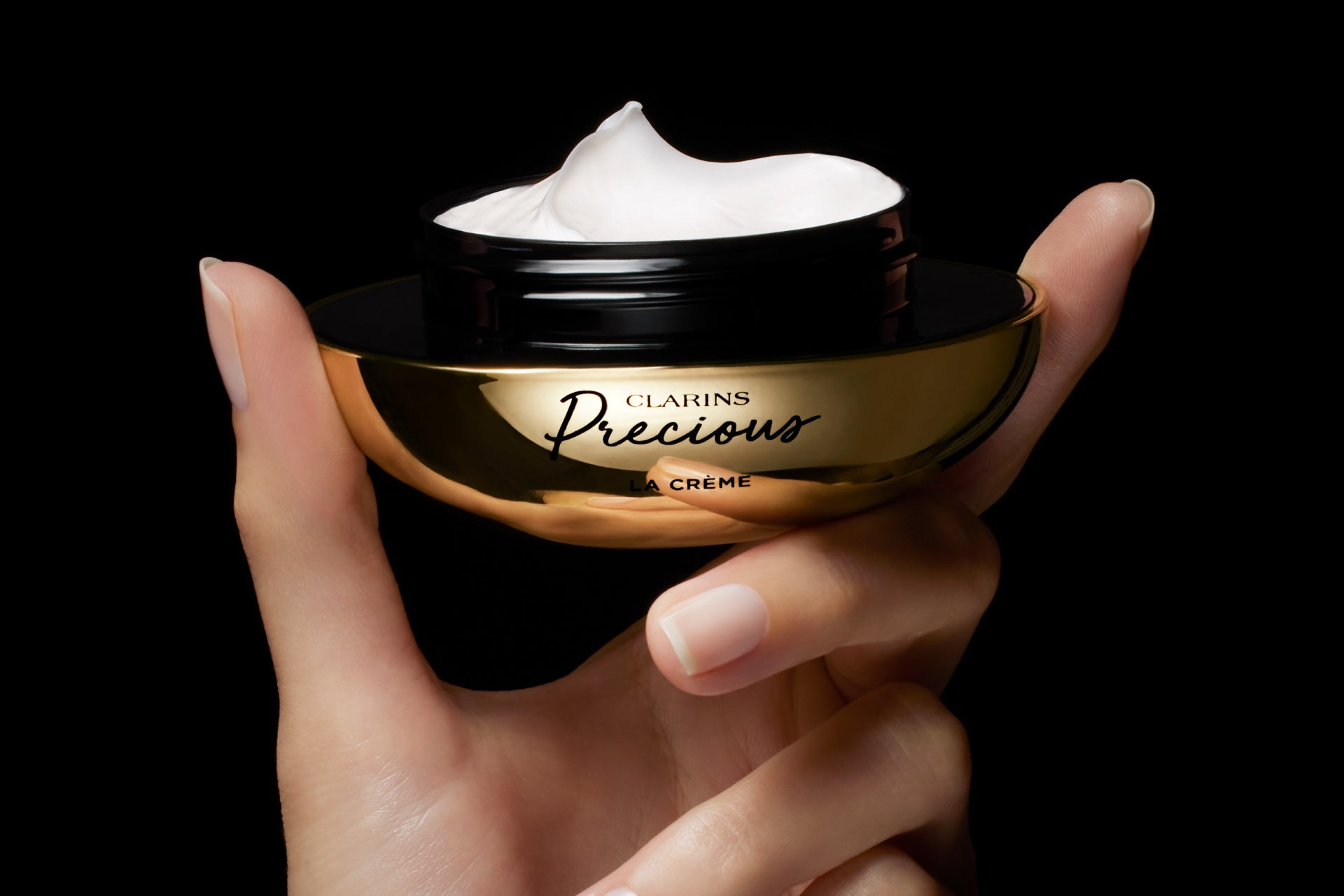 クラランスプレシャス シリーズを象徴する「クラランスプレシャス ラ クレーム」は、贅沢なテクスチャーに包まれた有用成分が、肌をすべるように溶け込む、まさにラグジュアリーな体験。
