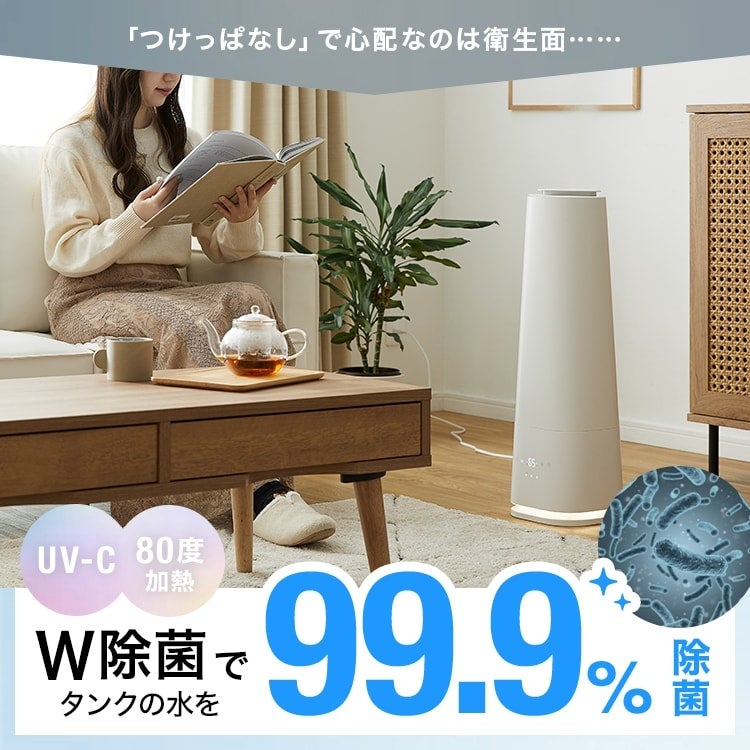 UV-Cと80度加熱による除菌や、タワー型ならではのメリットが詰まったこだわりが盛りだくさんの本商品は、お客様からの評価も高く、『タワー型、UV除菌、加熱、アロマ対応、上から給水。この条件が全て揃った加湿器で、他にもリモコンが磁石で本体に付いたり、ランプ機能があったり、想像以上の大容量で給水がとても楽です!デザインも素敵だし、これ以上の加湿器が他に見つかりませんでした♡♡お手頃価格で次もこれが欲しいです。』など、嬉しい声が寄せられています。