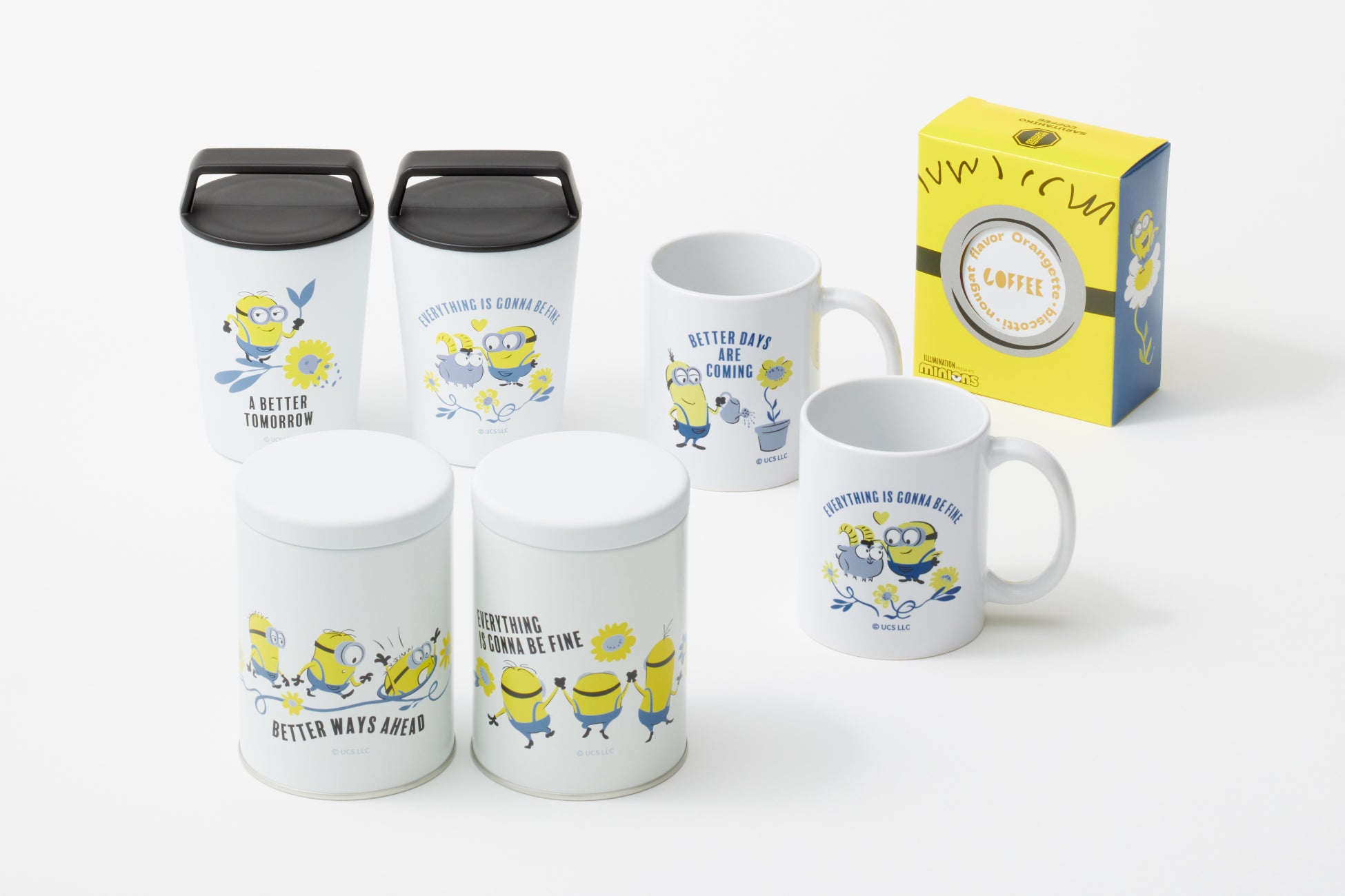 期間中、原宿駅店のグッズコーナーがMINIONS Mall POP-UP STOREになり、ミニオンズオリジナルグッズを発売します。また猿田彦珈琲とのコラボグッズとしてはミニオンたちが仲間と一緒に愉快に飛び回る様子をイメージしたテイストの限定ブレンドを使用したドリップバッグが登場。ブレンド内に使用しているイエローブルボン品種は黄色い果実が特徴でミニオンズにそっくり!?と思い今回採用いたしました。ワクワクするユーモラスな味わいをお楽しみください。また、コラボデザインのキャニスター缶やマグカップもございます。