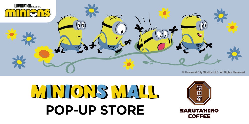 本イベントでは原宿駅店内にMINIONS Mall POP-UP STOREがオープンし、猿田彦珈琲とのコラボグッズのドリップバッグやマグカップをはじめとした、ミニオンズグッズを発売。ご購入いただいたお客様にはご注文のドリンクをミニオンズのラテアートに変更できるチケットもお配りいたします。