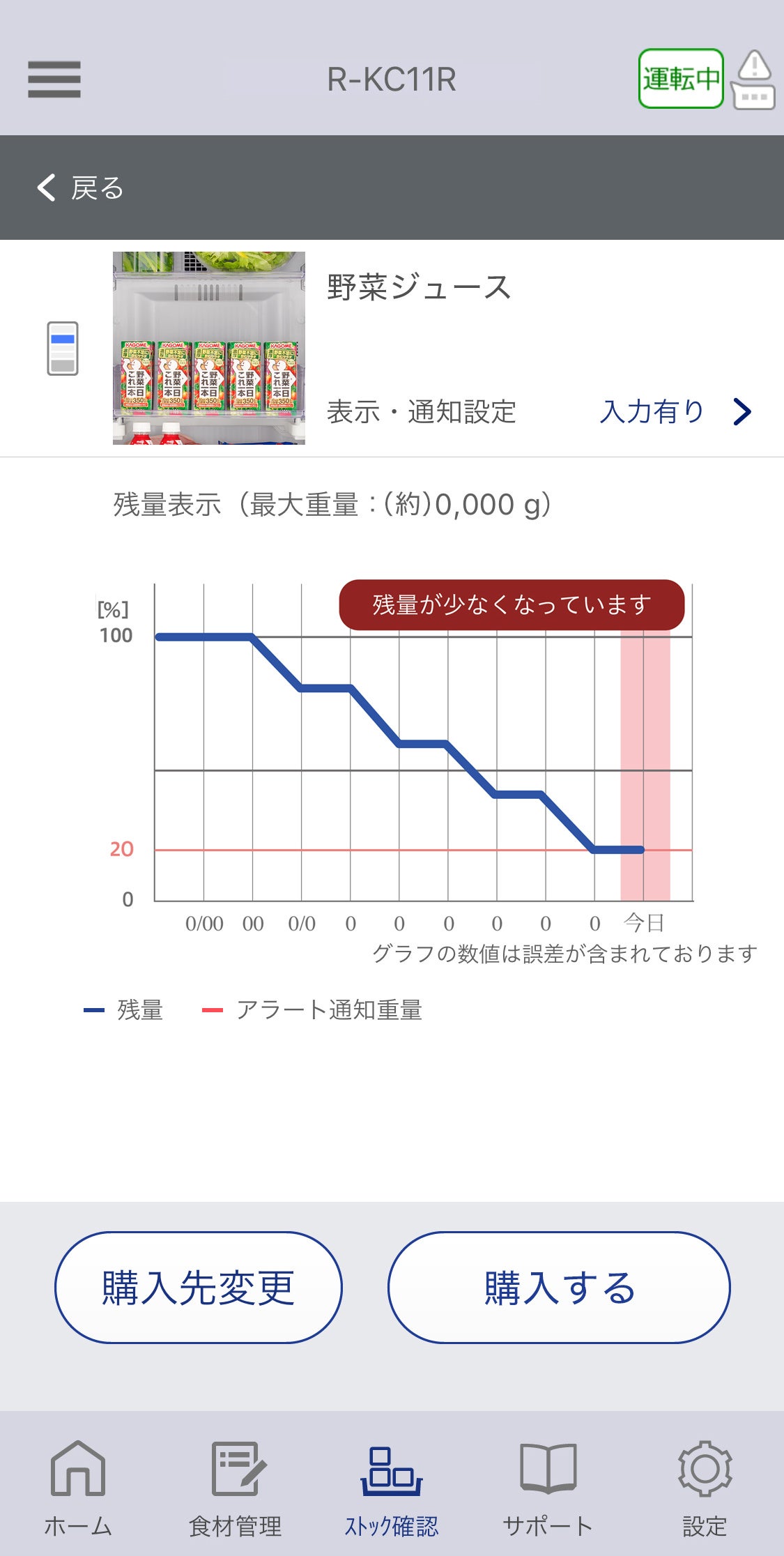 冷蔵庫の食材管理をスマートフォンでサポートする「日立冷蔵庫コンシェルジュアプリ」に、ストック管理したい食品を登録するとともに、その購入先に「Amazonスマートリオーダー」を登録(*4)しておくと、「スマートストッカー」R-KC11Rの庫内の2段目と5段目に搭載された重量センサーで食品の重さを検知(*5)し、残量が少なくなったら自動で再注文します。これにより、アプリの「お買い物サポート」機能の活用の幅が広がり、ますます便利になります。