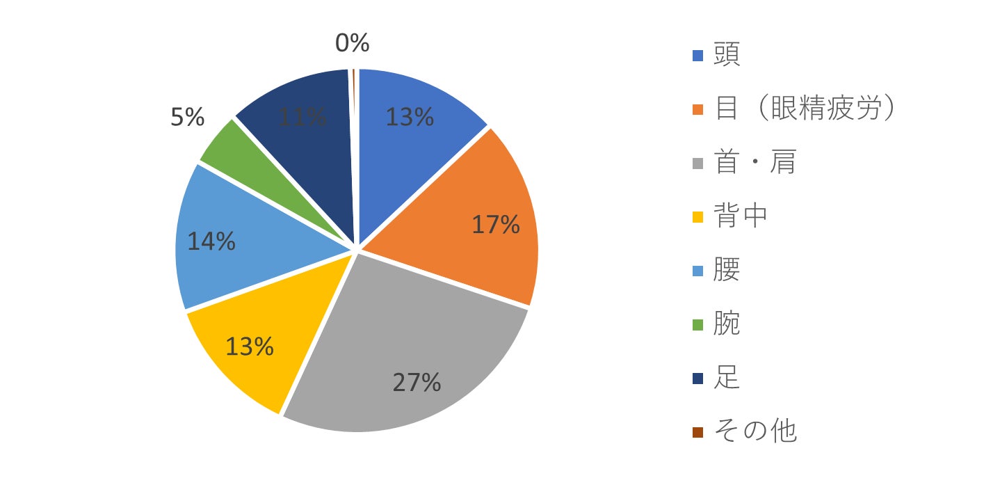当社が実施したお客様アンケートでも、「首・肩・目・頭」など、上半身に疲れを感じている方が多い傾向が見られました。
