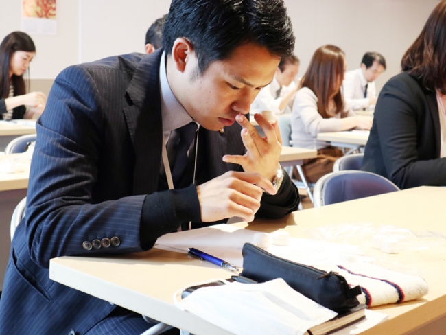 「香りの大会」は、嗅覚を磨き、“香り”に対する意識や感性の向上を図ることで、製品開発へ活かすことを目的として始まりました。成績優秀者は今後さらなる訓練を積み“香りのエキスパート”として香料担当への道が開けます。