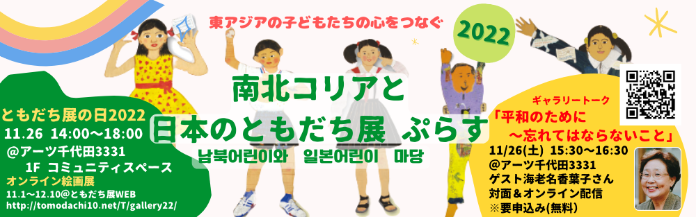 絵画展期間中の11月26日(土)には、対面イベント「ともだち展の日2022~私のニュース、みんなのニュース」を開催、毎年、東京大空襲のあった3月に平和の集いを主催されている海老名香葉子さんをゲストにお招きしたギャラリートークもおこないます。