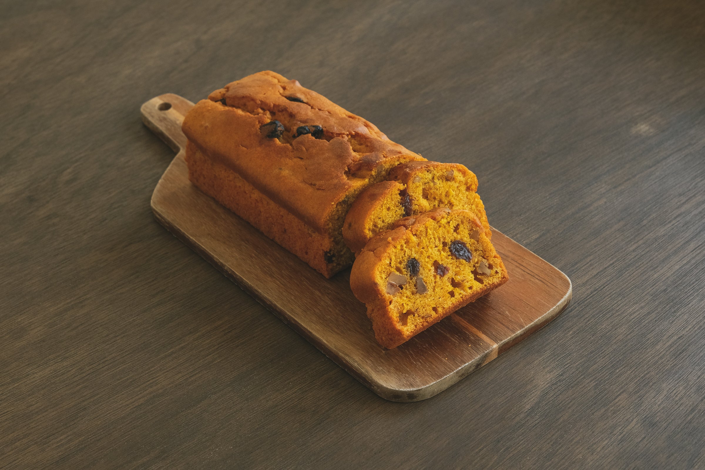 徳島県の春夏にんじんの出荷量は全国1位で、春(3〜5月)に収穫される、徳島県の春にんじんは「柔らかくて、甘い」ことが特徴です。特徴を活かして、1本あたり90gのにんじんをたっぷり練り混み、スパイスを加えた生地と一緒にしっとりと焼き上げました。にんじんの風味や栄養成分を逃さないよう、一度蒸し焼きにし甘みを引き出してペーストにして使用したこともこだわりのひとつです。また、シナモンとナツメグを加えることで、にんじんの甘みを引き出し、香り高く仕上げました。濃厚なスパイスに爽やかさを出すためにりんごとレモンも加えています。さらに、くるみとレーズンを入れることで、食感の楽しさも実現しました。