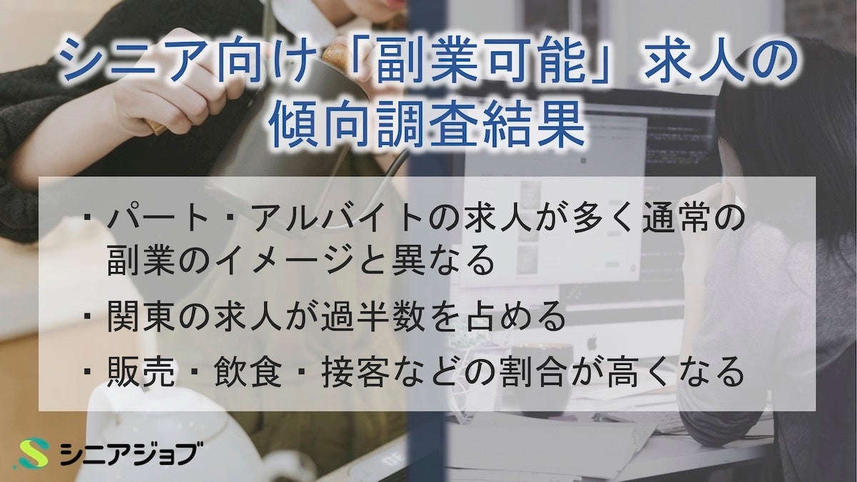 シニア向け副業可能求人はパート求人多く、副業イメージと相違、傾向調査結果