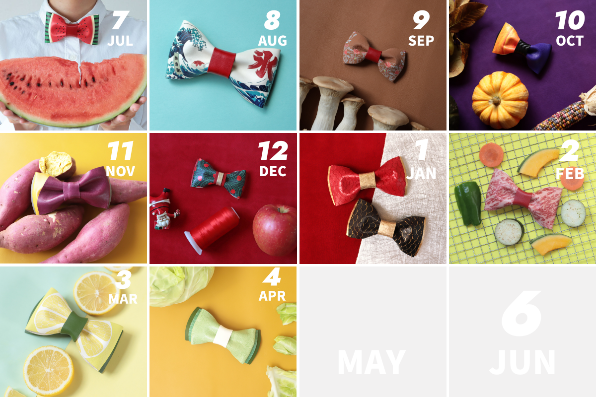 グルメリポーター彦摩呂と革職人のコラボ。四季のグルメが蝶ネクタイになった!4月は春キャベツをデザイン。