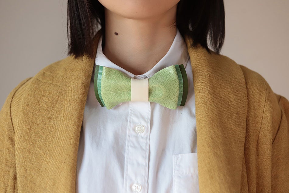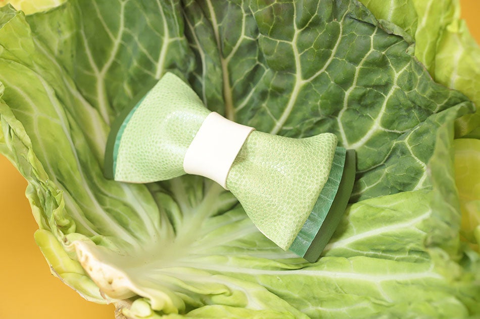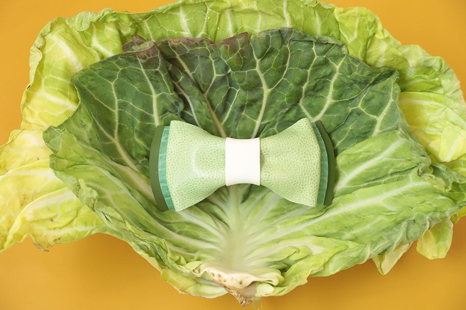 革職人が本革で全てハンドメイド「グルメな革の蝶ネクタイ第10弾は春キャベツ」