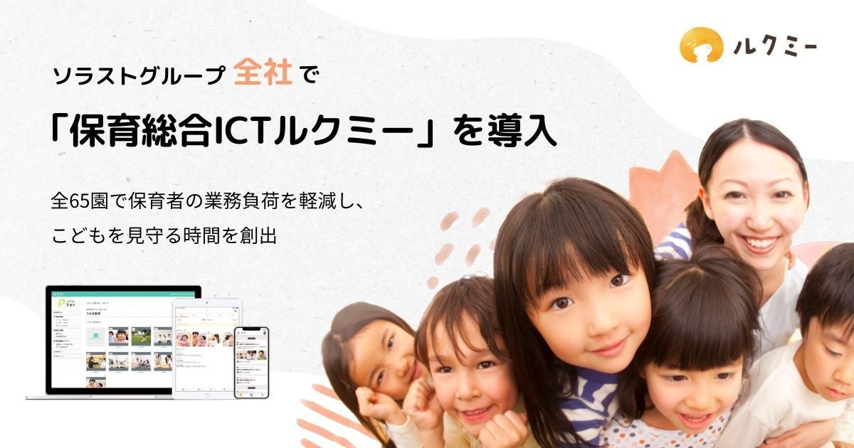 テクノロジーの力で保育や子育てに関する社会課題を解決するユニファ株式会社(本社:東京都千代田区、代表取締役CEO:土岐泰之、以下「ユニファ」)が提供する「保育総合ICT ルクミー」が、株式会社ソラスト(本社:東京都港区、代表取締役社長CEO:野田 亨、以下「ソラスト」)のグループ企業である、はぐはぐキッズ株式会社(以下「はぐはぐキッズ」)および株式会社なないろ(以下「なないろ」)が運営する保育施設計28園で2025年3月以降に新たに導入されることになりました。これによりソラストグループの保育園全65園においてルクミーが導入されたことをお知らせいたします。