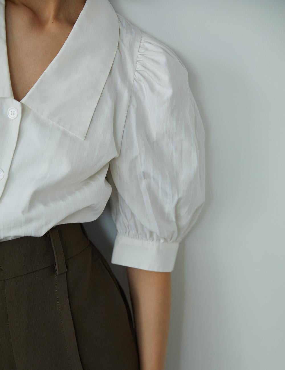 【たっぷりとしたボリューム袖がトレンド感たっぷりなパフブラウス】