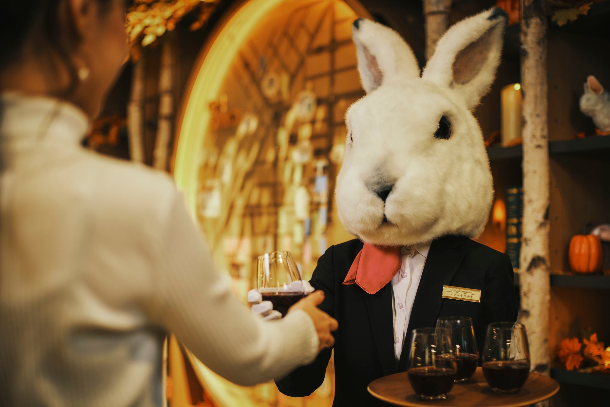 ホテルに到着したお客様には、ウェルカムドリンクの振る舞いがあります。本イベント限定で、エゾユキウサギのオリジナルレシピである、ハスカップ*1やアロニア*2を使用したドリンクを用意。ハロウィン気分を盛り上げます。