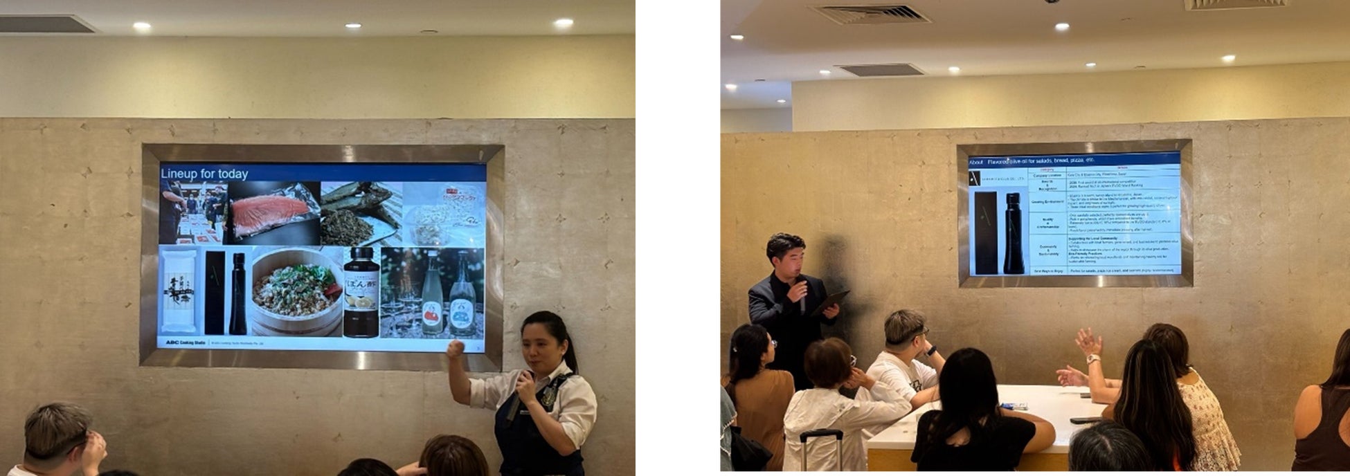 現地消費者の実食によって品質・鮮度が維持されていることを確認するとともに、各品目の産地や生産背景、特徴についてレクチャーを行うことで、日本産品についての理解とさらなる需要の喚起を促しました。