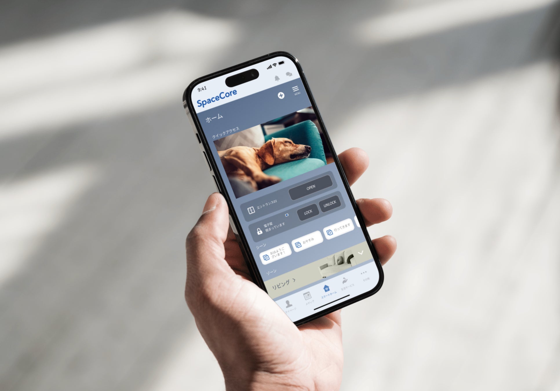 「SpaceCore(スペース・コア)」は、不動産会社やハウスメーカー等の住宅・不動産事業者(以下、事業者)と居住者・オーナーのためのスマートホームサービスです。全国400社以上、約23,000件※利用されております。スマートホーム機器を設置し、専用アプリで家電製品や住宅設備のオートメーション化や遠隔操作可能になる「スマートホーム機能」、物件のオーナーや居住者との契約事や日々のコミュニケーションがアプリやスマートスピーカーで円滑におこなえる「リレーション機能」、暮らしに関するさまざまなサービスを利用できる「生活サービス機能」を備えています。これらの機能を一元化し、事業者と居住者の双方が活用できるサービスを提供しています。
