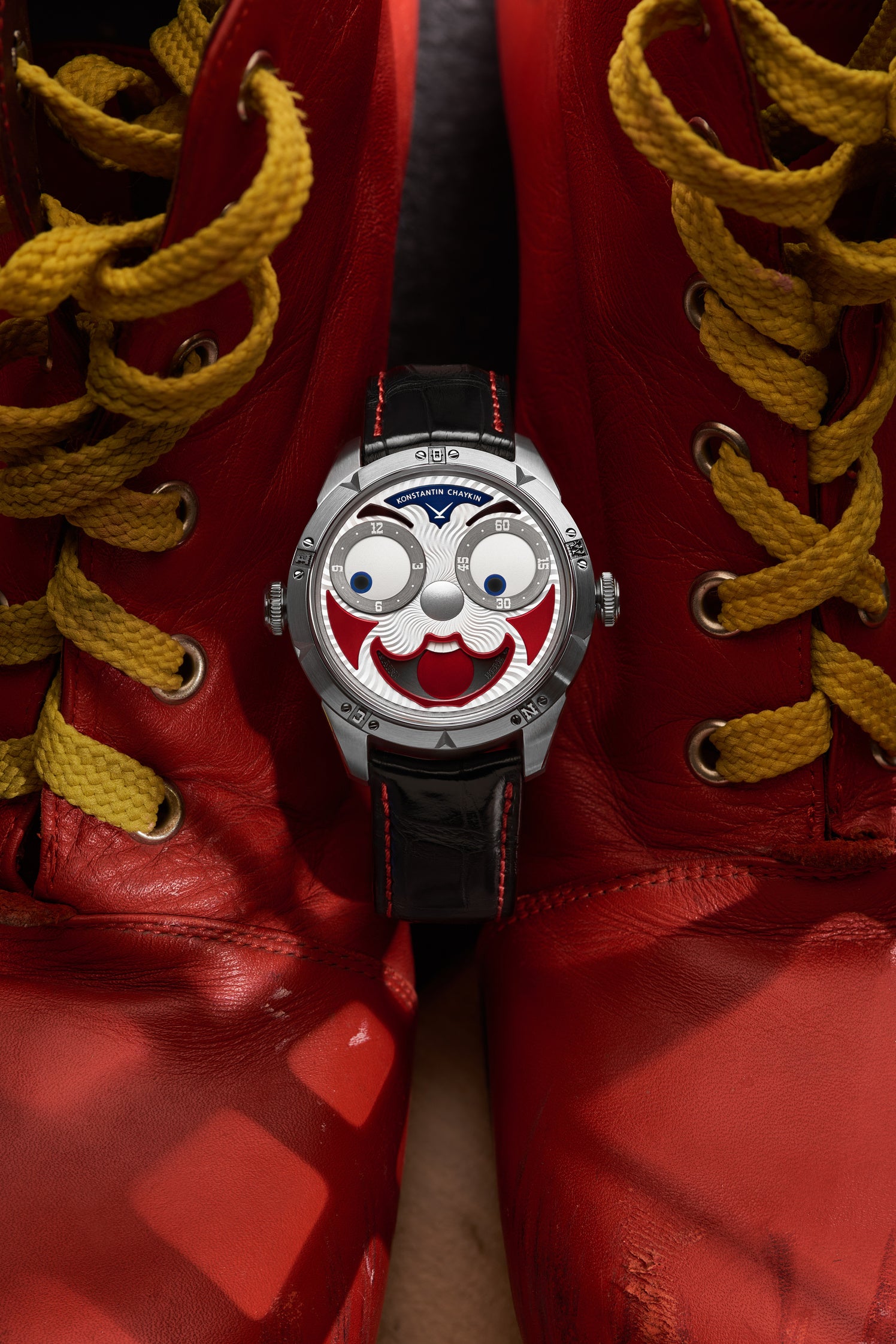 ステンレスケースのベゼルにある時計の名前は、このモデルの為にコンスタンチン・チェイキンが選んだバロック文字で刻まれています。