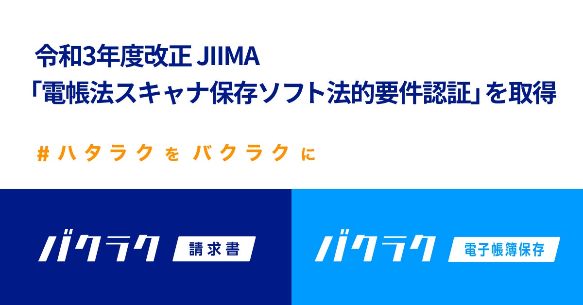 バクラク請求書&電子帳簿保存がJIIMA「電帳法スキャナ保存ソフト法的要件認証」を取得。電子帳簿保存法対応を強化