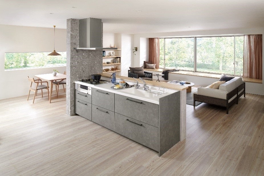 また、「フック式ツールスタンド」の追加で収納機能を充実させました。そのほか、「食器洗い乾燥機R(フロントオープン・通いかご・扉材)」は、洗浄できる食器点数が増えて機能性が高くなり、「グリルレス3口IHヒーターP(換気連動)」は、従来のシルバー色に加え、トレンドのブラック色を新たに品揃えします。