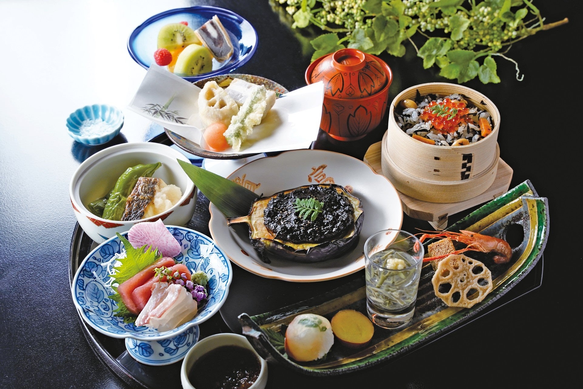 初夏にぴったりの多彩な食材をご堪能いただける、懐石料亭「花がすみ」では、「初夏ざんまい御膳(8,470円【税サ込、室料サービス】)」を平日期間限定でご提供しています