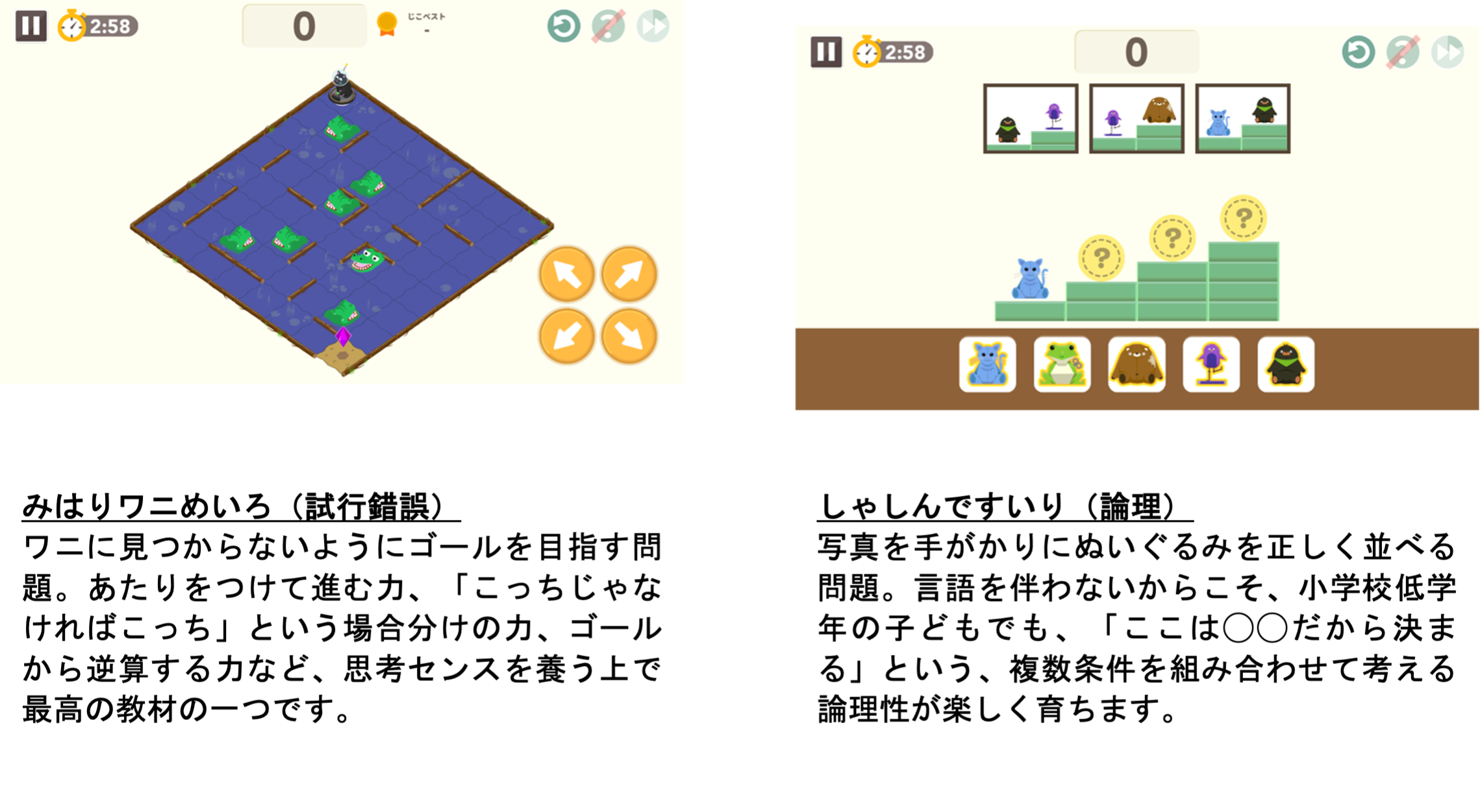 同アプリは抽象思考の基礎となる思考センスを育てる問題を多数収録し、世界中に配信。また、三重県と「教育振興のための包括協定」を締結し、2018年度より、同県全土への教材提供やアドバイスを行っている(*3)他、カンボジアではJICA・政府との協働案件として同国への思考力教育の導入を推進するなど(*4)、国内外で官学と連携した取り組みを行っています。