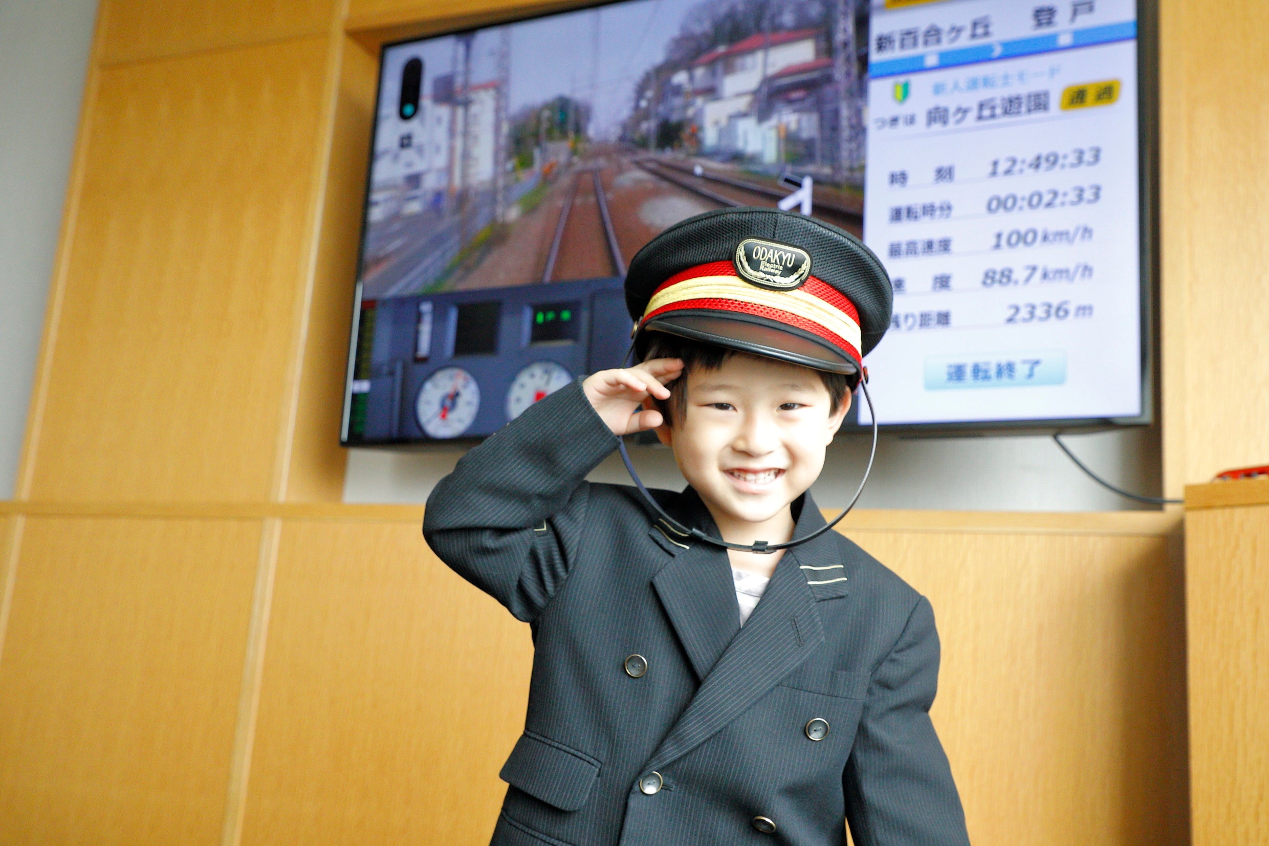 7. 特典:お子様用の駅長制服(90、110、130、150cm)をレンタル。制服を着用すればまさに小田急線運転士気分。