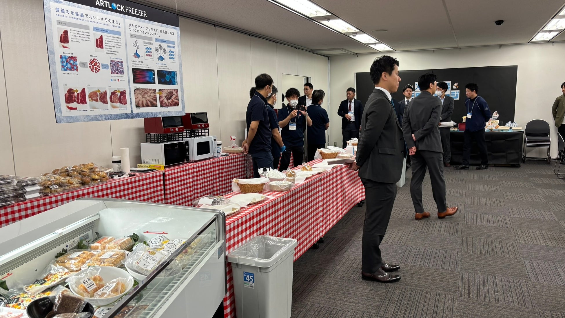 会場には、実際に商品化された高品質な冷凍食品各種(ローストビーフやパン、和菓子、ピザ、コロッケ、冷凍フルーツなど)を並べ、試食も提供。参加者アンケートでは、回答者の98.5%が満足(大変満足47.7%、満足50.8%の合計)と評価したほか、「最新の冷凍技術を体験して品質の高さを実感した」「試食の品質の良さに驚きました」といった声が多数寄せられました。